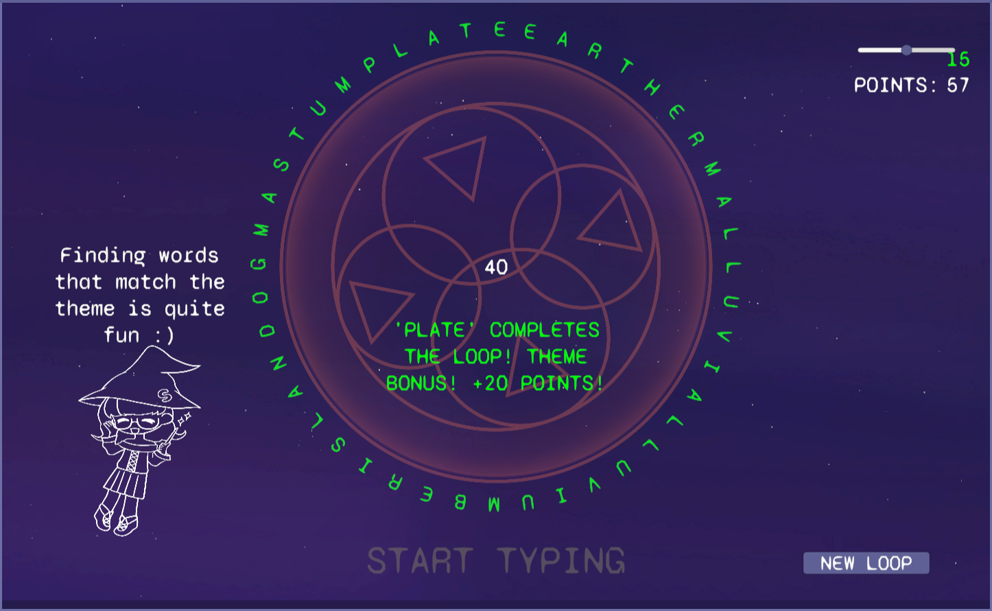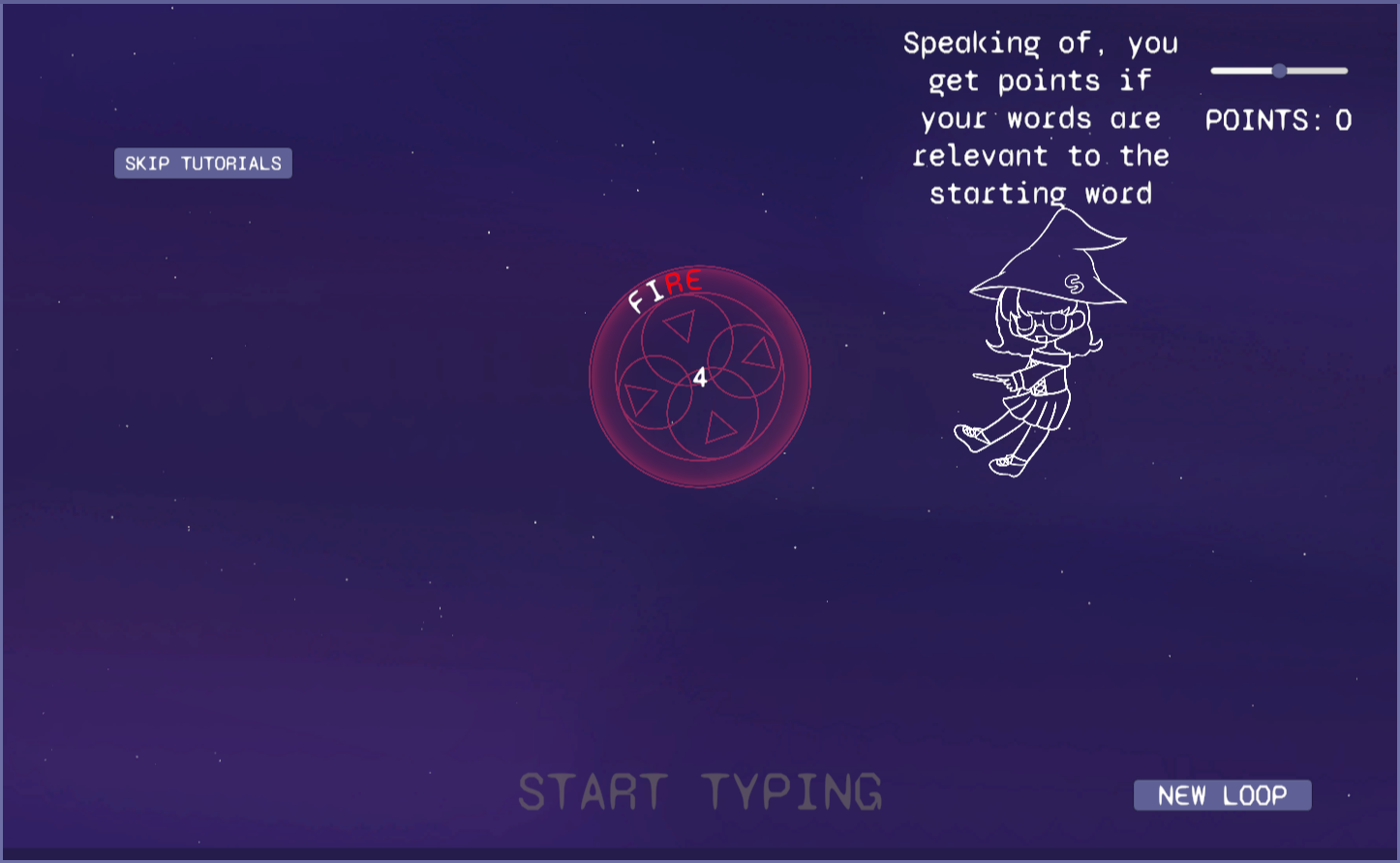 Bind words together and finish the loop to cast spells! Created for the GMTK Game Jam 2025.